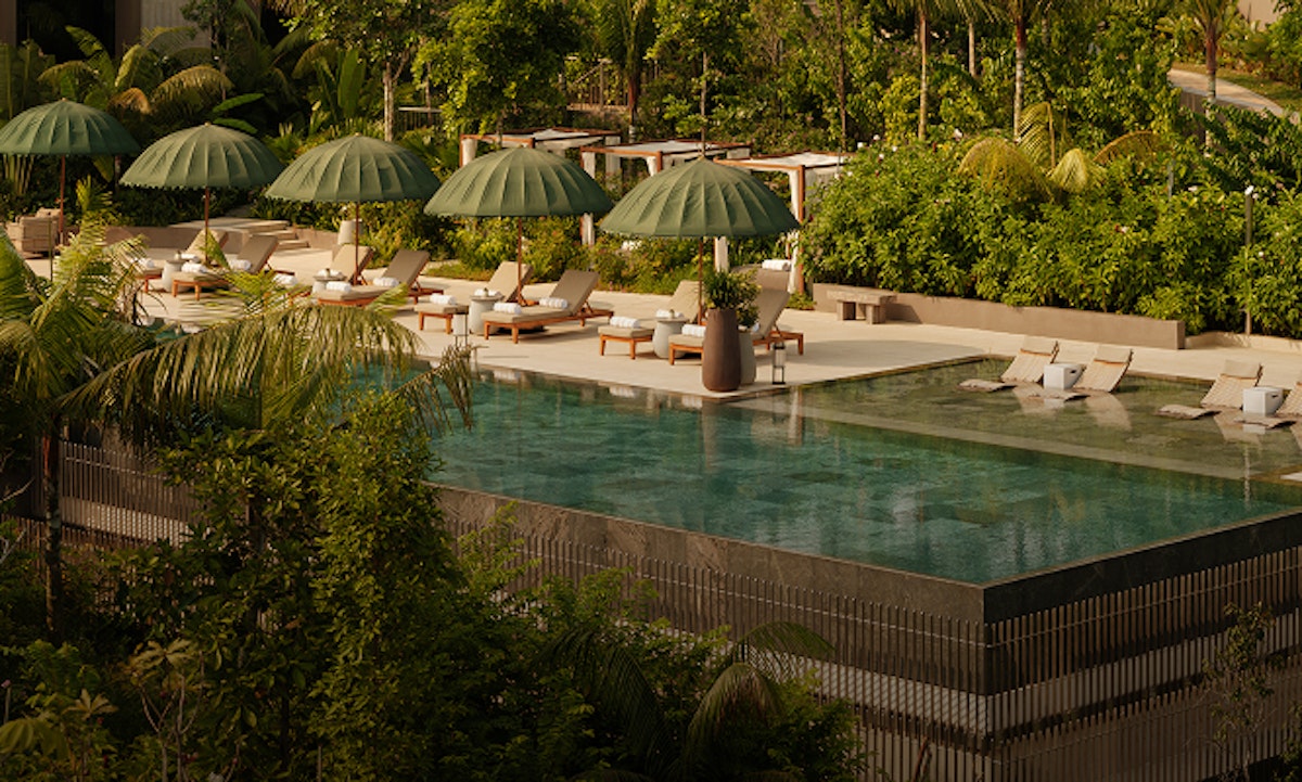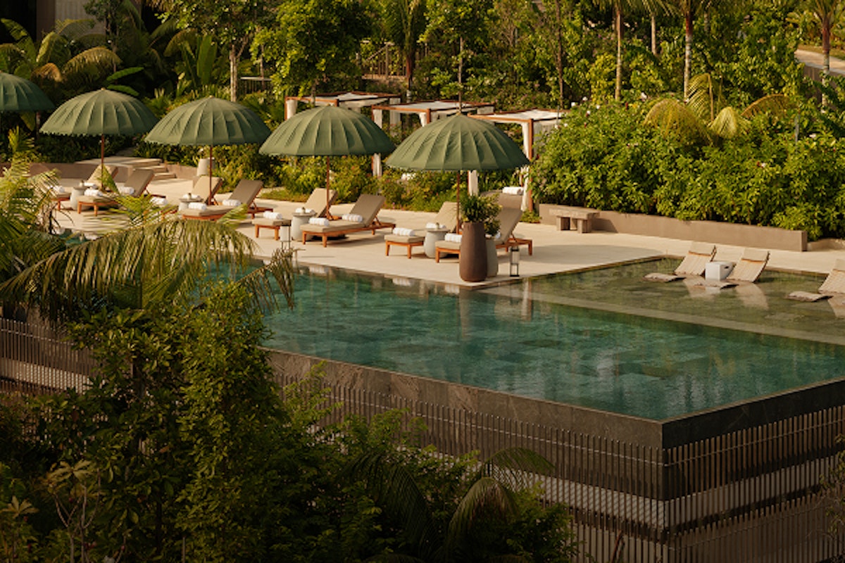 Tucked into greenery, Amara Sanctuary Sentosa offers a more understated take on pool access in Singapore. The space feels open and considered, with pool areas that never feel busy.