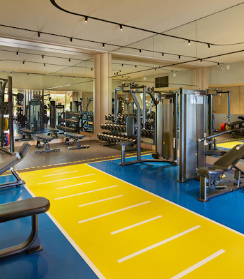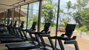 The gym here feels considered from the moment you walk in. Recently refurbished, it overlooks the pool, with floor-to-ceiling windows bringing in natural light, so it never feels closed in or rushed.